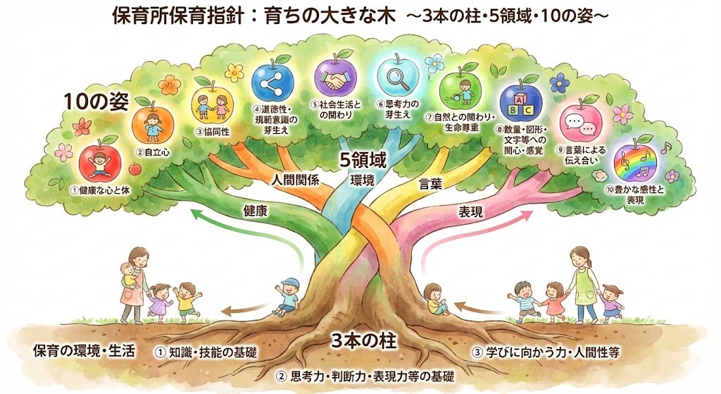 保育所保育指針では、幼児期の終わりまでに育ってほしい姿として、10の姿を掲げています。